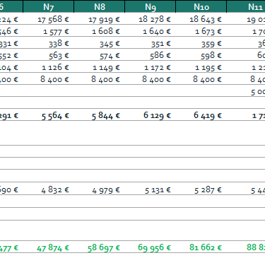 20 k€ de travaux complémentaires pour maintenir en état le bien lissé entre N+11 et N+14.